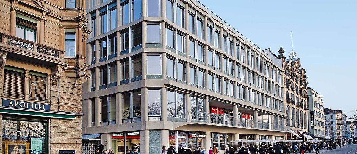 Wir prüfen, inwiefern Umwelteinflüsse und Klimarisiken unsere Gebäude beeinträchtigen oder in Zukunft beeinträchtigen könnten. Als grösstes Risiko im Zusammenhang mit den physischen Auswirkungen des Klimawandels sehen wir die steigenden Temperaturen im Sommer. Insgesamt werden die durch den Klimawandel verursachten Risiken für unser Immobilienportfolio jedoch als gering bis moderat eingestuft. Die Anpassung an heissere Sommer fliesst in die Richtlinien für Neubau und Modernisierungen ein. Im Ersatzneubau Clime in Basel wurden zum Beispiel innovative elektrochrome Fenster zur Reduktion der benötigten Kühlenergie eingesetzt.