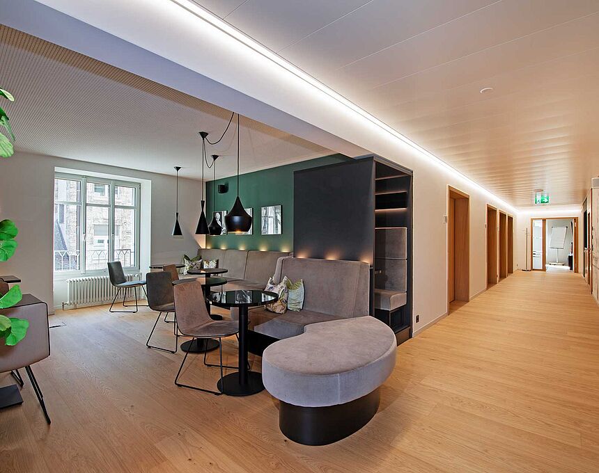 In a prominent location near Zurich's Bellevue, the historic "Zürcherhof" has been converted into a first-class commercial building.