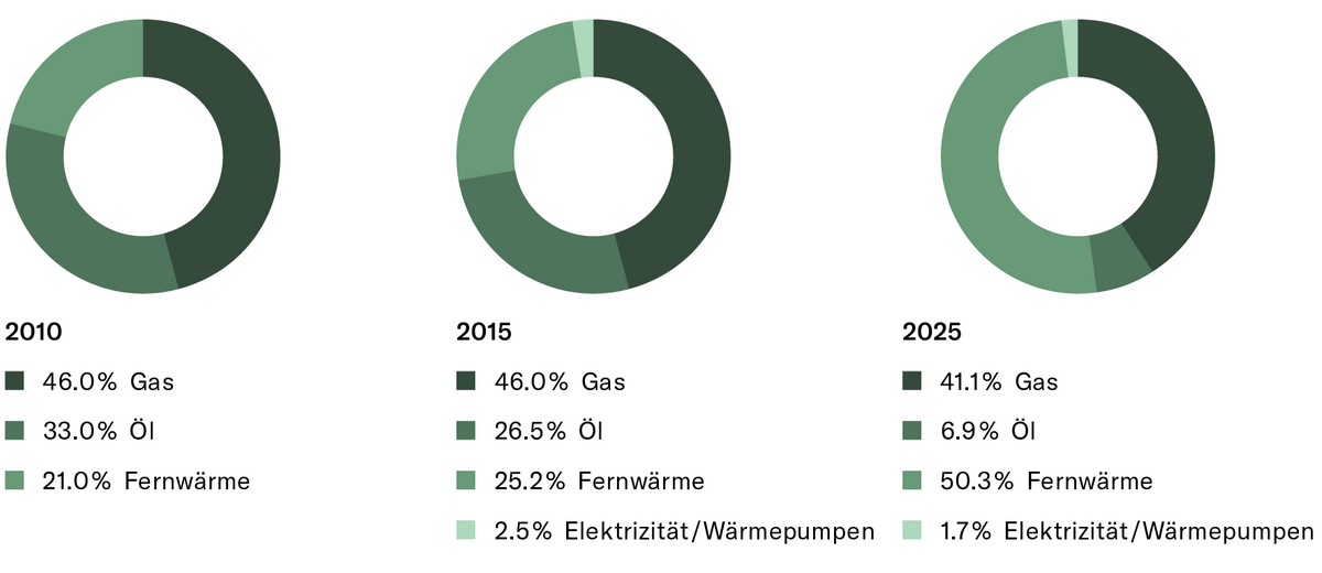 Um die Ziele des CO2-Reduktionspfades zu erreichen, sind Energieeffizienz und CO2-Reduktion integrale Kriterien in unserer Sanierungsplanung und im Betrieb. Unsere Prioritäten sehen folgt aus:
